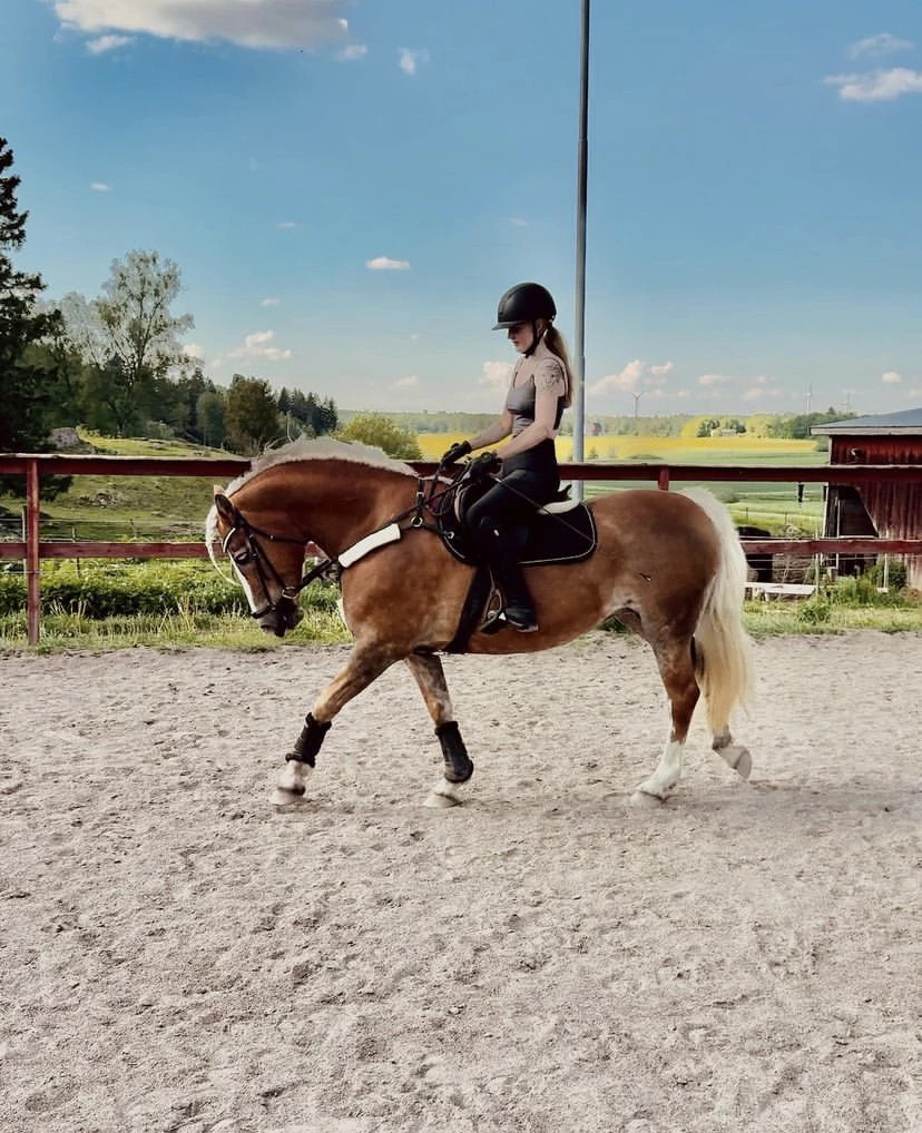 Enya är ett mycket trevligt sto, rastypiskt sto med en underbar personlighet. Enya har tidigare gått som tur häst, men på grund av en senskada har hon fått gå som avelssto hos oss och förvärva sina fina kvalitéer. De senaste åren har hon börjat gå som ridhäst igen under enkla förhållanden, är just nu utlånad för att ge samma glädje som hon gett oss!